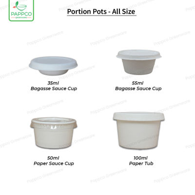 • Delivery: Paper Portion Pots are good for packaging and even storing all types of sauces. They come with snug-fit lids that can safely carry more liquid and oily items. These are also good for soy sauce and other vinegar-based sauces; however, performance might be impacted, and carry time will be 30-90 minutes, depending on the food content.